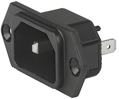 IEC-Gerätestecker C18, Schraubmontage, Lötanschlüsse.