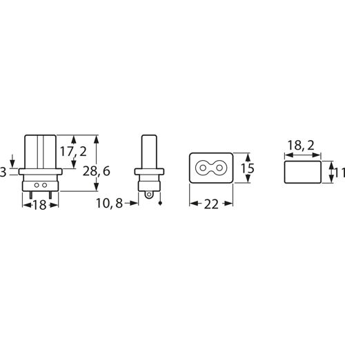 Einbaubuchse D, 2-polig, Einlegemontage, Lötanschluss, schwarz, 6180.0006