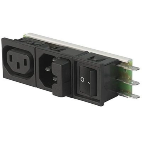 IEC Gerätesteckdose C14 + F mit modular erweiterbaren Komponenten.