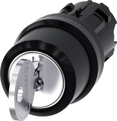 Schlüsselschalter RONIS, 22 mm, rund, Kunststoff, Schließ-Nr. SB30, mit 2 Schlüsseln, 3 Schaltstellungen I-O-II, verrastend, Schaltwinkel 2x45°, 10:30h/12h/13:30h, Schlüsselabzug I, mögliche Sonderschließungen: SB31, 421, 455 Schlüsselschalter SIRIUS ACT für einen höheren Anspruch an Zugangssicherheit.