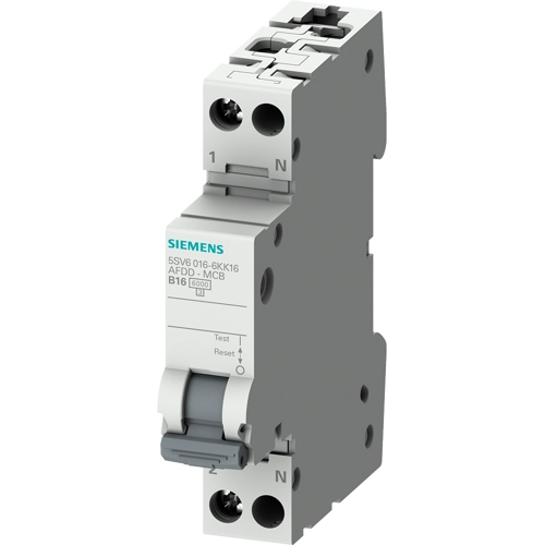 Brandschutzschalter-LS-Kombi 230V, 6kA, 1+N, C, 16A Kompakt (1TE) Brandschutzschalter-Leitungsschutzschalter SENTRON 5SV6 für den zuverlässigen und umfassenden Schutz von Menschen, Anlagen und Vermögenswerten bei Fehlerlichtbögen.
