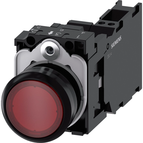 Leuchtdrucktaster, 22 mm, rund, Kunststoff, rot, Druckknopf, flach, tastend, mit Halter, 1S+1Ö, LED-Modul mit integrierter LED AC 110 V, Federzuganschluss Leuchtdrucktaster SIRIUS ACT zur Schaltung und Steuerung elektrischer Verbraucher.