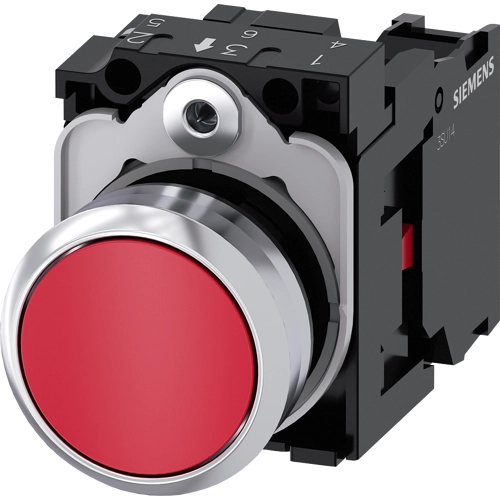 Drucktaster, 22 mm, rund, Metall, hochglanz, rot, Druckknopf, flach, tastend, mit Halter, 1Ö, Schraubanschluss Drucktaster SIRIUS ACT zur Schaltung und Steuerung elektrischer Verbraucher.