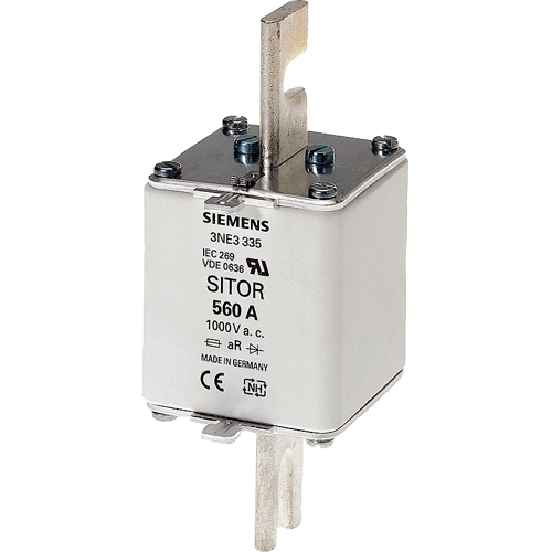 SITOR-Sicherungseinsatz, mit geschlitzten Messerkontakten, NH2, In: 400 A, aR, Un AC: 1000 V, Stirnkennmelder Halbleiterschutzsicherungen SITOR 3NE, 3NC schützen Leistungshalbleiter vor den Auswirkungen eines Kurzschlusses. Das SITOR-Sicherungssystem von Siemens als wichtiger Bestandteil der SENTRON Schutzkomponenten für die Elektroinstallation bietet effektiven Personen-, Geräte- und Anlagenschutz durch sicheres Abschalten im Überlast- und Kurzschlussfall. Der Einsatzbereich umfasst zusätzlich Frequenzumrichter mit Sicherungen im Eingangs- und im DC-Zwischenkreis sowie auch USV-Anlagen und Sanftstarter für Motoren.