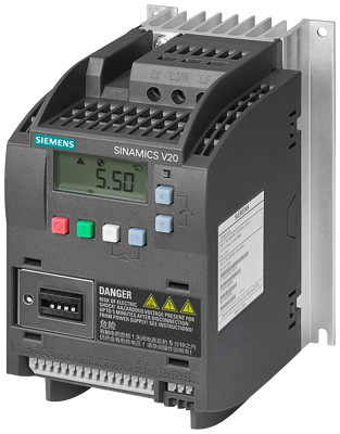 SINAMICS V20 3AC 380-480V -15/+10 % 47-63Hz Nennleistung 1,5 kW mit 150 % Überlast für 60 Sek. ungefiltert I/O: 4 DI, 2 DO,2 AI, 1 AO Feldbus: USS/MODBUS RTU mit eingebautem BOP Schutz: IP20/ UL offen Größe: A 90x166x146 (BxHxT) Frequenzumrichter SINAMICS V20. Einfach. Robust. Effizient. Für industrielle Applikationen und gewerbliche Anwendungen im Spannungsbereich 3AC 380 V bis 480 V. SINAMICS V20 zeichnet sich durch kurze Inbetriebnahmezeiten, einfache Bedienung, Robustheit und Kosteneffizienz aus. Der Umrichter kann ohne zusätzliche Module direkt aus der Verpackung betrieben werden. Zur Steigerung der Energieeffizienz ist der Umrichter mit einem energieoptimalen Steuerungsverfahren mit automatischer Flussabsenkung ausgerüstet. Er stellt zudem den aktuellen Energieverbrauch dar und verfügt über weitere integrierte Energiesparfunktionen. Der Keep-Running-Modus ermöglicht einen stabilen Betrieb auch bei schwierigen und schwankenden Netzbedingungen. Der Umrichter ist in neun Baugrößen in einem Leistungsbereich von 0,12 kW bis 30 kW für den Betrieb an ein- und dreiphasigen Netzen (1AC 200 V bis 240 V, 3AC 380 V bis 480 V) verfügbar. Der SINAMICS V20 kann mittels verschiedener Optionen, wie lokale Bedieneinheit Basic Operator Panel (BOP) oder mobile Bedieneinheit SINAMICS V20 Smart Access Module, BOP-Interface, Standard-Netzwerkkabel, Netzfilter, Bremswiderstände, Schirmung, etc. individuell den Anforderungen der Applikation angepasst werden. Zudem ermöglicht er die einfache Systemkonfiguration mit vordefinierten Makros im Umrichter und vorgefertigten Funktionsblöcken aus dem Totally Integrated Automation Portal (TIA-Portal) für den schnellen Anschluss z.B. an eine SIMATIC-S7-1200 Steuerung.Der Basisumrichter SINAMICS V20 ist eine technische und wirtschaftliche Alternative für den Micromaster 420 Frequenzumrichter.