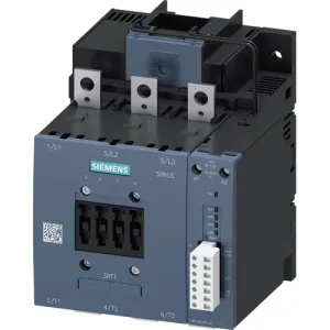 Leistungsschütz, AC-3e/AC-3 185 A, 90 kW / 400 V AC (50-60 Hz) / DC Uc:96-127 V SPS Eingang 24 V DC 3-polig, Hilfskontakte 1 S + 1 Ö Antrieb: elektronisch Hauptstr.: Schiene Steuer- und Hilfsstromkreis: Schraubanschluss mit Restlebensdauermeldung Leistungsschütz SIRIUS 3RT1 zum Schalten von Motoren.