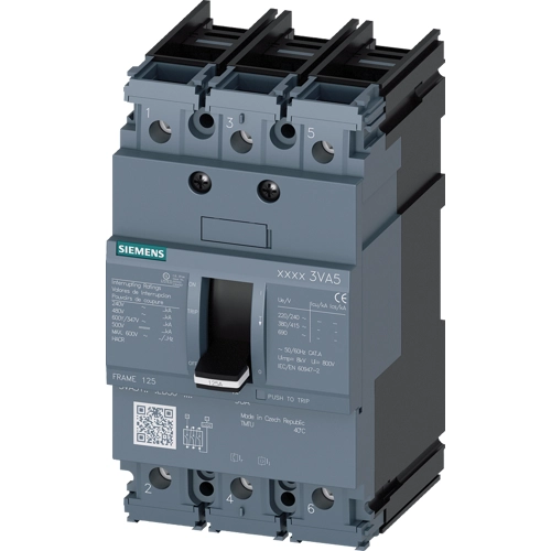 Leistungsschalter 3VA5 UL Frame 125 Schaltvermögenklasse M 35kA @ 480V 3-polig, Anlagenschutz TM210, FTFM, In=60A Überlastschutz Ir=60A fest eingestellt Kurzschlussschutz Ii=10 x In Rahmenklemme.