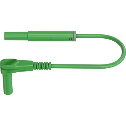 Sicherheitsmessleitung mit (4 mm Lamellenstecker, gerade) auf (4 mm Lamellenstecker, abgewinkelt), 1 m, grün, PVC, 1,0 mm², CAT III, CAT IV, 66.1049-10025