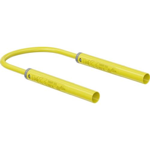 Sicherheitsmessleitung mit (4 mm Lamellenstecker, gerade) auf (4 mm Lamellenstecker, gerade), 0.5 m, gelb, PVC, 2,5 mm², CAT II, 66.1055-05024