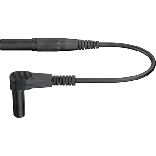 Sicherheitsmessleitung mit (4 mm Lamellenstecker, gerade) auf (4 mm Lamellenstecker, abgewinkelt), 2 m, schwarz, Silikon, 1,0 mm², CAT III, CAT IV, 66.1050-20021