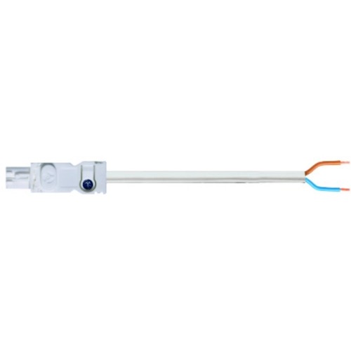 Anschlussleitung 2 x 1,5 mm² mit Buchse 2,0 m, AC. Buchse: blau; Leitung: weiß für Eingangsseite. VDE