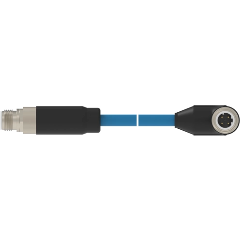 Netzwerkkabel, M12-Stecker, gerade auf M12-Stecker, abgewinkelt, Cat 5e, S/FTP, 7.5 m, blau, 1-2322422-4