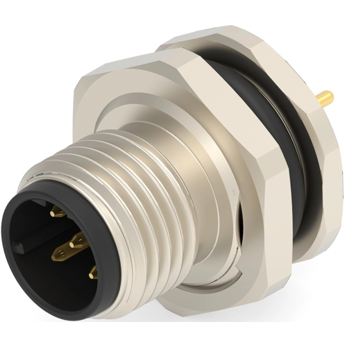 Standard-Rundsteckverbinder, Draht-zu-Schalttafel, 5 Positionen, abdichtbar, Leiterplatte, Signal, Umkehrgeschlecht, Nickel, Messing.