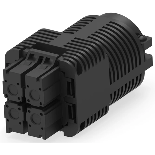Gehäuse, Buchse, Draht-zu-Leiterplatte, 4 Positionen, 16 mm mittellinie, Crimpverbindung, 2 Reihen, schwarz, Gegensteckarretierung, Leitung und Kabel.