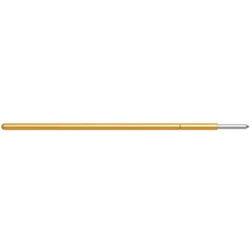 Kolben (Kopf) D 0,21 mm aus rhodiertem Stahl, Feder aus vergoldetem Stahl, Führungshülse aus Phosphor Bronze vergoldet; Nennstrom: 1,0 A, Federweg: max. 1,5 mm, Arbeitshub 1,2 mm, Federkraft: 40 cN, Durchgangswiderstand: max. 30 m Ohm.