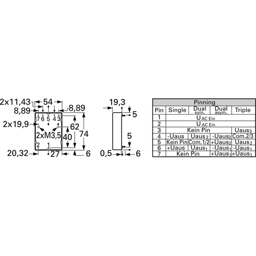 AC/DC-Wandler, 85-264 V, 15 W, 2 Ausgänge, 5/12 VDC, TMP 15252