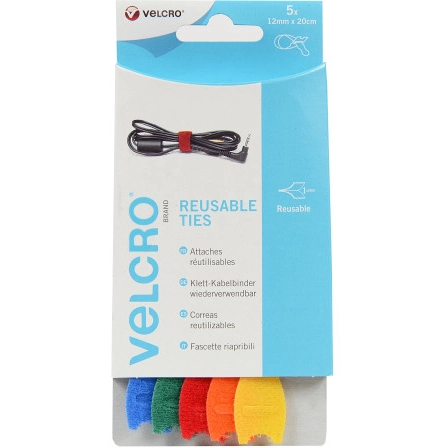 Kabelbinder, lösbar, (L x B) 200 x 12 mm, blau/grün/rot/orange/gelb, VEL-EC60250, Packung mit 5 Stück