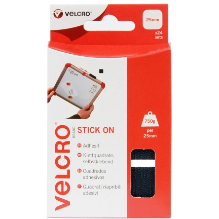 Klettquadrate-Set, Haltbarkeit bis zu 750 g, (B x H) 25 x 25 mm, VEL-EC60236, Packung mit 24 Stück