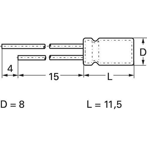 Elektrolytkondensator im Alu-Gehäuse mit Isolierumhüllung Typ Vishay/Roederstein EKA.