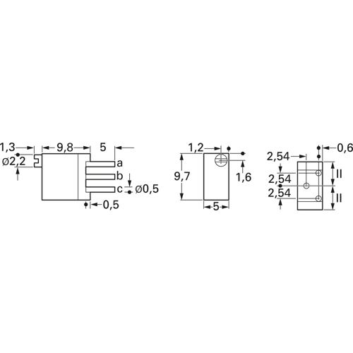 Der T93 ist ein Trimmer der Größe 3/8 Zoll. Er erfüllt die Anforderungen für die Montage auf Leiterplatten. Hervorragende Betriebsstabilität wird durch die Verwendung eines Cermet-Elements gewährleistet.