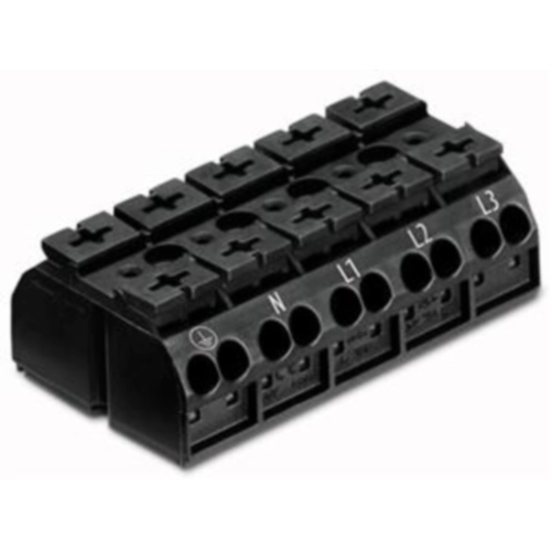 4-Leiter-Geräteanschlussklemme, für Anwendungen Ex e II geeignet, ohne PE-Kontakt, PE-N-L1-L2-L3, 5-polig, für Schraube und Mutter M3, 4 mm², 4,00 mm², schwarz.