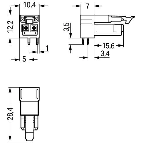 Steckdose für Leiterplatten, gewinkelt, 2-polig, Kode B, hellgrün.