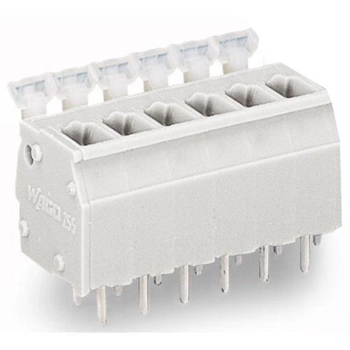 Leiterplattenklemme, 6-polig, RM 5 mm, 0,08-2,5 mm², 16 A, Käfigklemme, hellgrau, 255-406/000-009/999-950