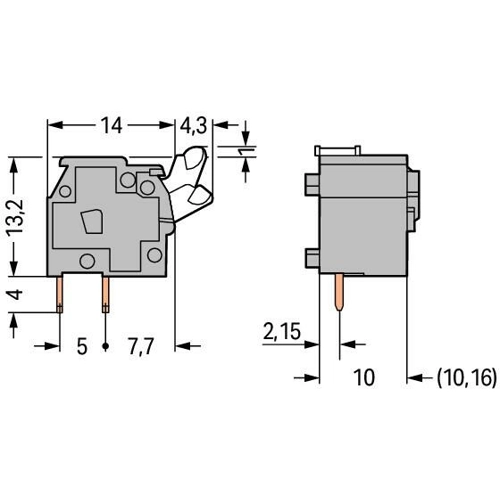 Anreihbare Einzelklemme mit Betätigungsdrücker 2 Lötstifte/Pol 1-polig Rastermaß 10/10,16 mm / 0,4 in hellgrün