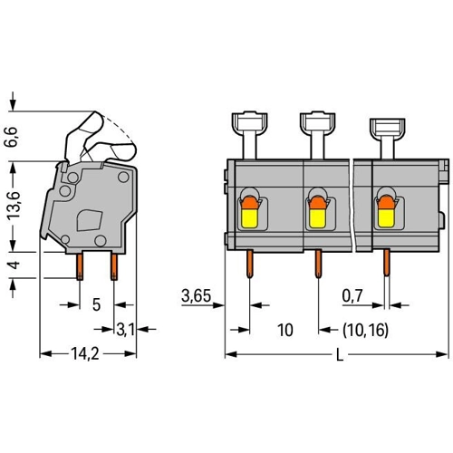 - Leiterplattenklemmen mit Drückern und CAGE CLAMP-Anschluss