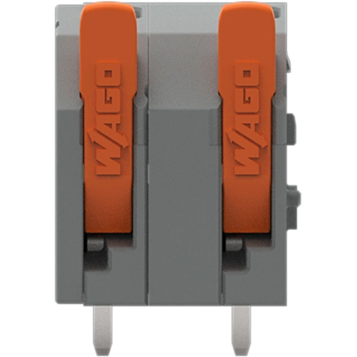 Leiterplattenklemme mit Push-in CAGE CLAMP Anschluss, mit Betätigungshebel, 26-14 AWG, Rastermaß: 7,5 mm, 2-polig, Leiterquerschnitt: 1,5 mm², Farbe: grau.