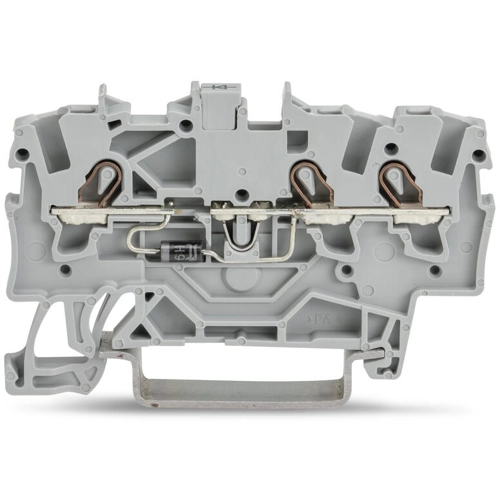 Bauelementklemme; 3 Leiter; mit Diode 1N4007; Anode rechts; für Tragschiene 35 x 15 und 35 x 7,5; 1,5 mm²; Push-in CAGE CLAMP®; 1,50 mm²; grau