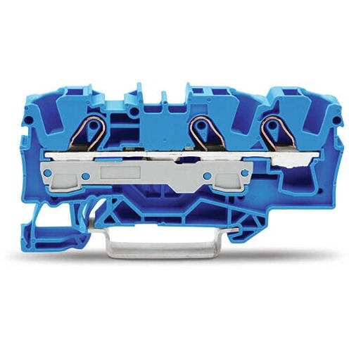 3-Leiter-DurchgangsKlemmleiste, 6 mm², für Ex e II und Ex i Anwendungen, seitliche und mittlere Markierung, für DIN-Schiene 35 x 15 und 35 x 7,5, Push-in CAGE CLAMP, 6,00 mm², blau.