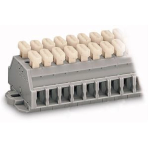 2-Leiter-Klemmenleiste beidseitig mit Betätigungsdrückern mit Befestigungsflanschen für Schraub- u.ä. Befestigungsarten Befestigungsloch Ø 3,2 mm mit Montagefuß 209-123 auch auf TS 35 7-polig grau