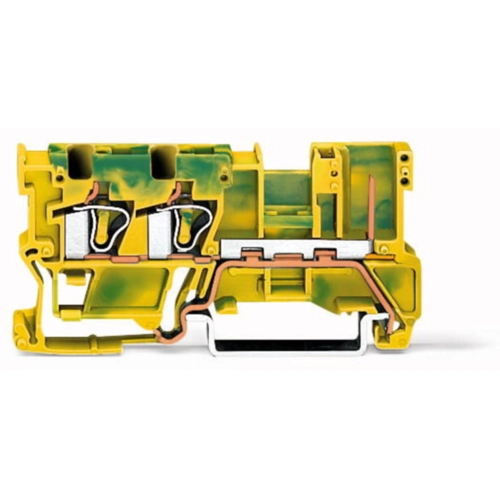 2-Leiter/1-Pin-PE-Basisklemme; 4 mm²; für Tragschiene 35 x 15 und 35 x 7,5; CAGE CLAMP®; 4,00 mm²; grün-gelb