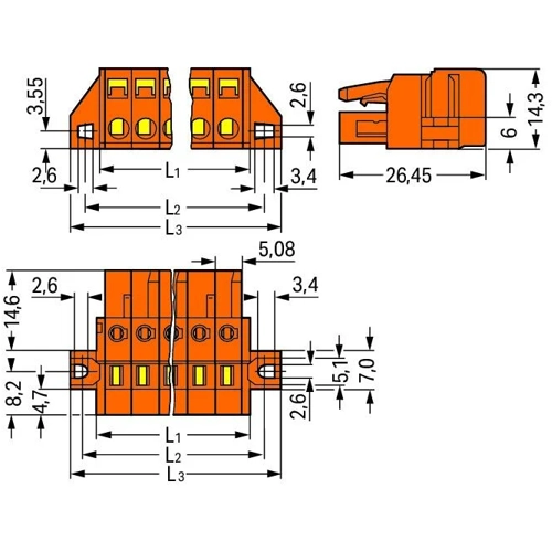 Federleiste mit Befestigungsflanschen 17-polig Rastermaß 5,08 mm / 0.2 in kodierbar mit 2 Rastklinken für Oberflächenmontage für Schraub- o.ä. Befestigungsarten mit Kodiernase mit Rastnase orange