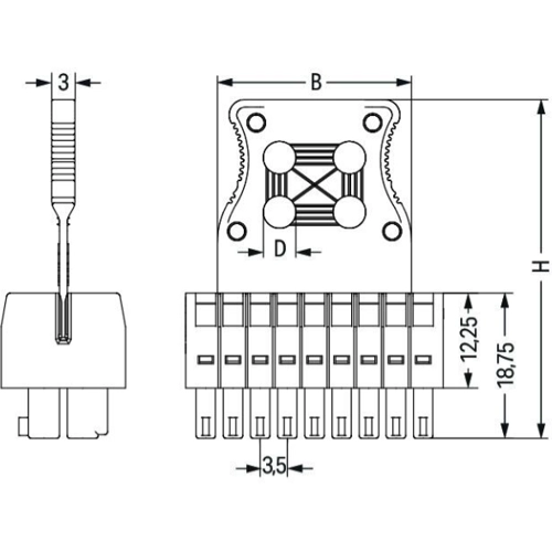Federleiste mit Trennhilfe und Zugentlastungsplatte 2-reihig 3x2-polig Rastermaß 3,5 mm / 0.138 in 100 % fehlsteckgeschützt kodierbar durch Abschneiden der Kodiernasen schwarz
