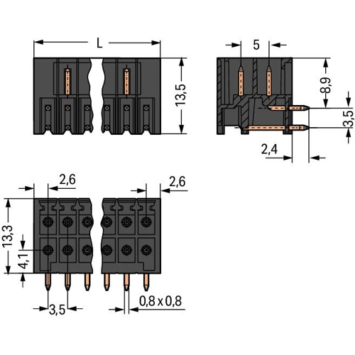 Stiftleiste mit abgewinkelten Lötstiften 2-reihig 3x2-polig Rastermaß 3,5 mm / 0.138 in 100 % fehlsteckgeschützt Steckrichtung parallel zur Leiterplatte schwarz