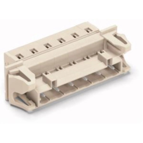 Stiftleiste mit Snap-In-Flanschen für Durchführungsanwendungen mit Blechdicken von 0,5 bis 2,5 mm 7-polig Rastermaß 7,5 mm / 0.295 in 100 % fehlsteckgeschützt ohne voreilenden PE-Kontakt lichtgrau