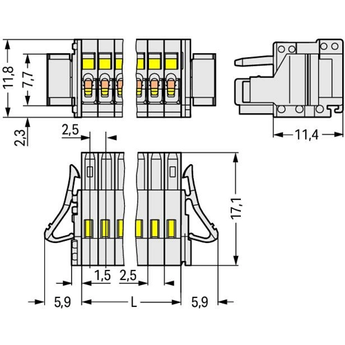 Buchsenleiste, 9-polig, RM 2.5 mm, abgewinkelt, lichtgrau, 733-109/037-000