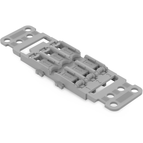 Befestigungsadapter mit Zugentlastung, 3-fach, für Durchgangsverbinder mit Hebel, mit Rastfuß, grau