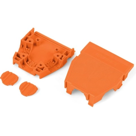 Anrastbares Zugentlastungsgehäuse bestehend aus Zugentlastungsunterteil und -oberteil 7-polig passend für Rastermaß 7,62 mm orange.