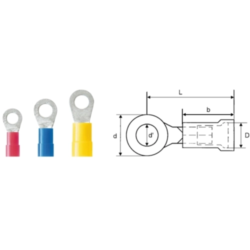 Isolierter Ringkabelverbinder aus Kupfer mit konischem Einführtrichter.