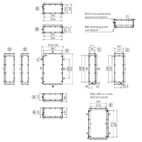 - Erdungsbolzen im Gehäusedeckel und -unterteil