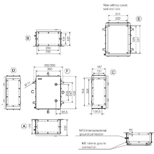 Edelstahl Gehäuse, (L x B x H) 200 x 300 x 400 mm, silber (RAL 7035), IP66, 1200320000