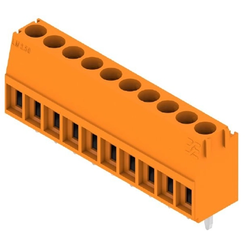 Leiterplattenklemme, 3,50 mm, Polzahl: 10, 90°, 3,2 mm, orange, Zugbügelanschluss, 2,08 mm², Box