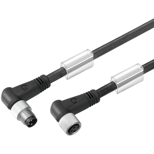Sensor-Aktor Kabel, M8-Kabelstecker, abgewinkelt auf M8-Kabeldose, abgewinkelt, 3-polig, 3 m, PUR, schwarz, 4 A, 1857670300