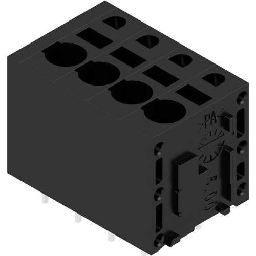 Leiterplattenklemme, 5,00 mm, Polzahl: 4, 180°, Lötstiftlänge (l): 3,5 mm, verzinnt, schwarz, PUSH IN, Klemmbereich, max. : 2,5 mm², Box.