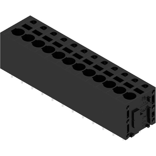 Leiterplattenklemme, 5,00 mm, Polzahl: 12, 180°, Lötstiftlänge (l): 3,5 mm, verzinnt, schwarz, PUSH IN, Klemmbereich, max. : 2,5 mm², Box.