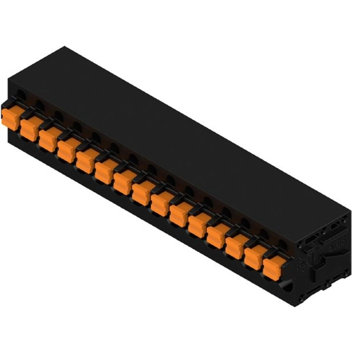 Leiterplattenklemme, 5,08 mm, Polzahl: 15, 90°, Lötstiftlänge (l): 3,5 mm, verzinnt, schwarz, PUSH IN mit Betätigungselement, Klemmbereich, max. : 2,5 mm², Box.