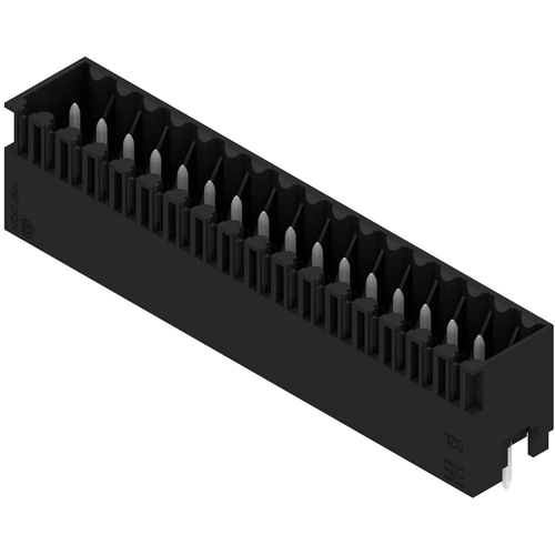 Die Stiftleiste mit der Stiftlänge 3,5 mm ist für das Wellenlöten ausgelegt und in einer Box verpackt. Ein Verschrauben mit der Leiterplatte ist möglich. Die Stiftleiste bietet Platz für Beschriftung und kann kodiert werden.